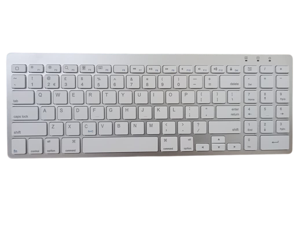 Ultra-slim, lightweight white keyboard with smooth soft keys.